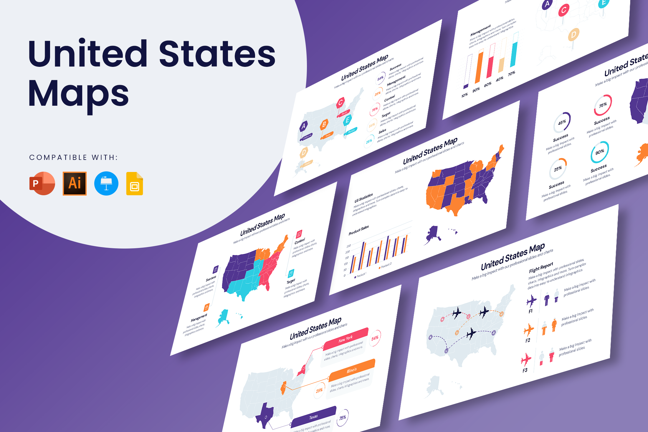 United States Maps for PowerPoint, Keynote, Google Slides and Illustrator