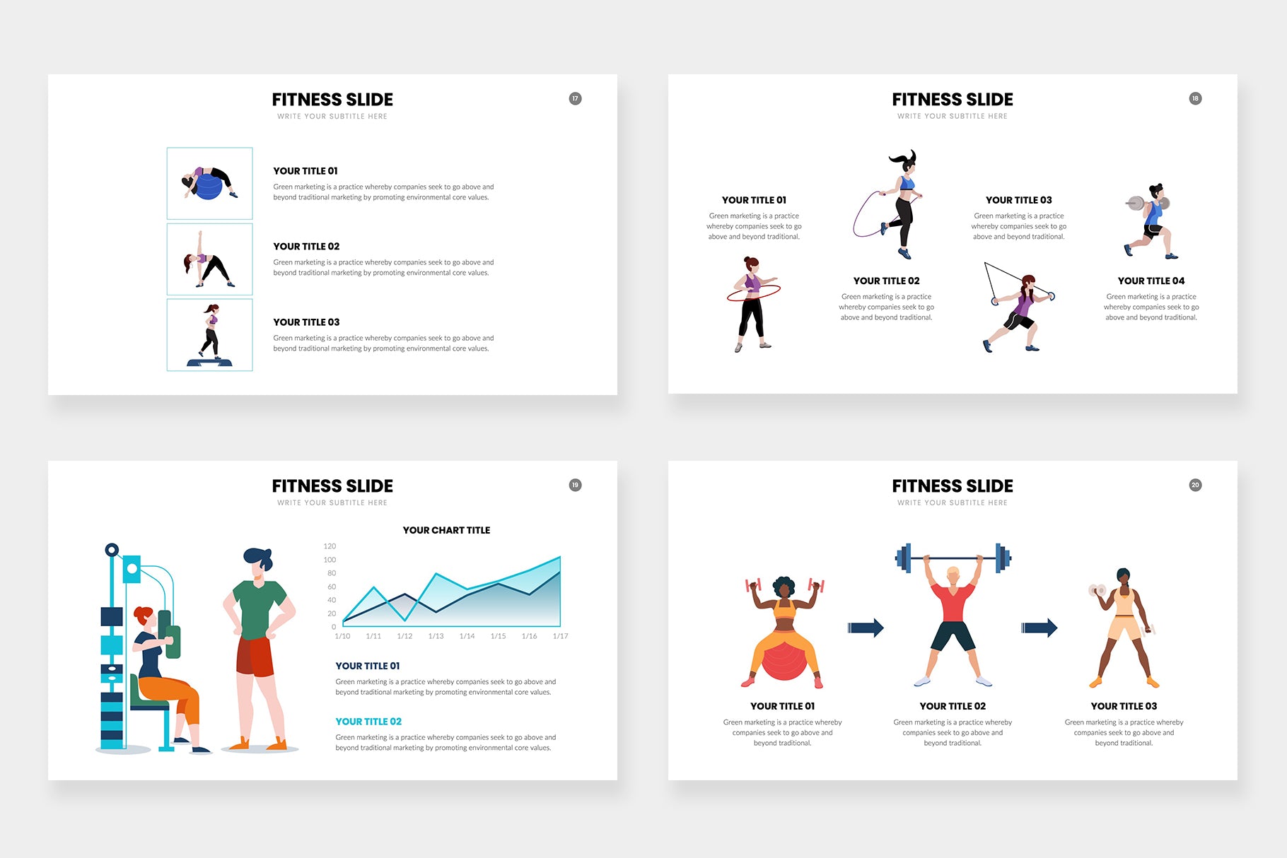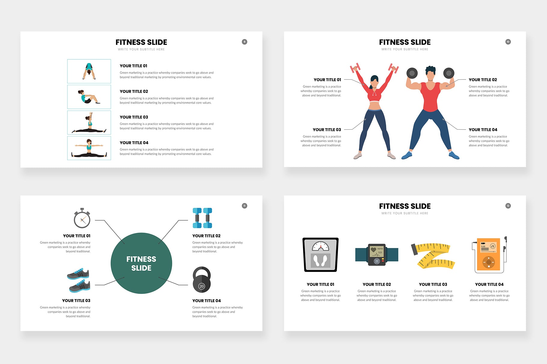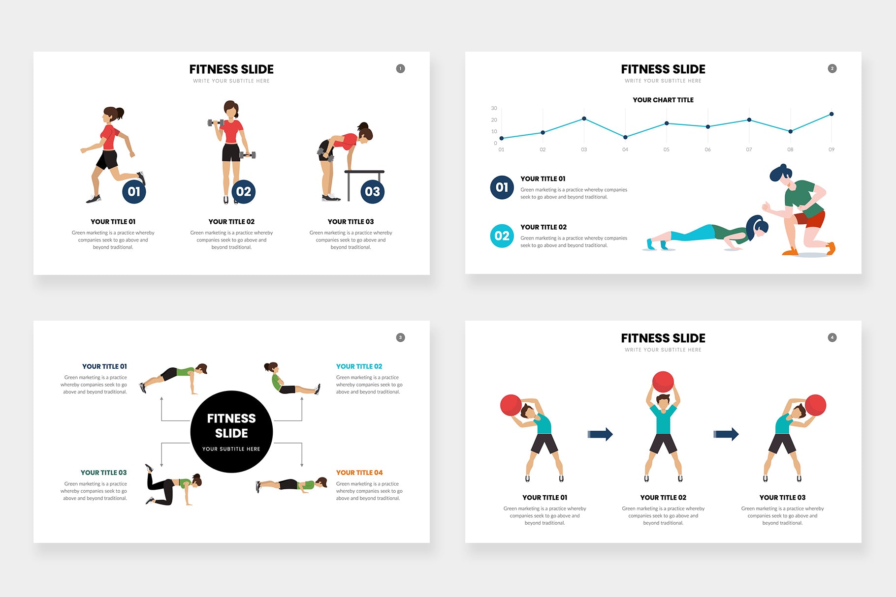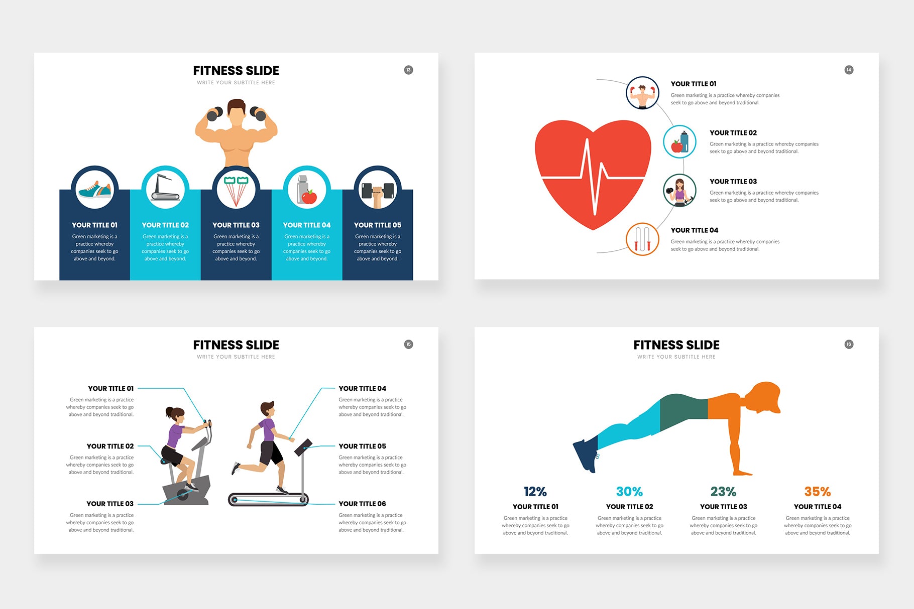 Fitness infographics compatible with Powerpoint, Keynote and Google Slides.