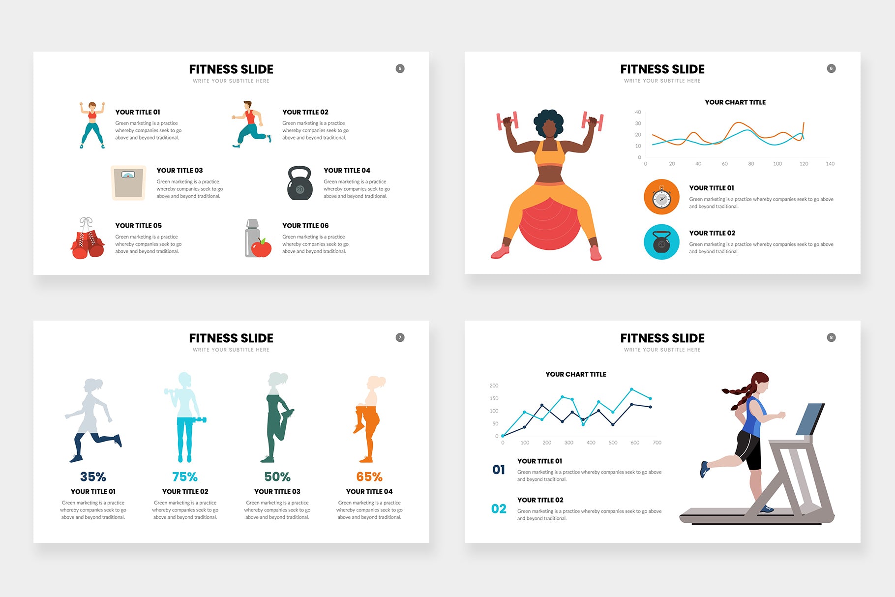 Use these Fitness diagrams for any project presentation. Easy to edit.