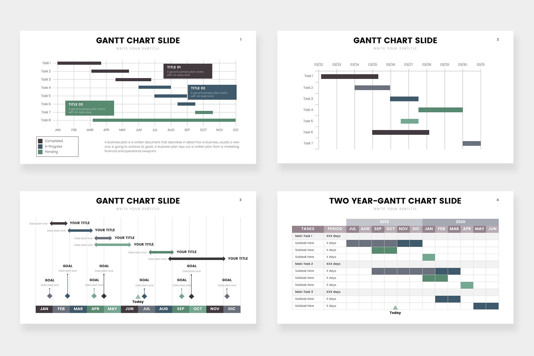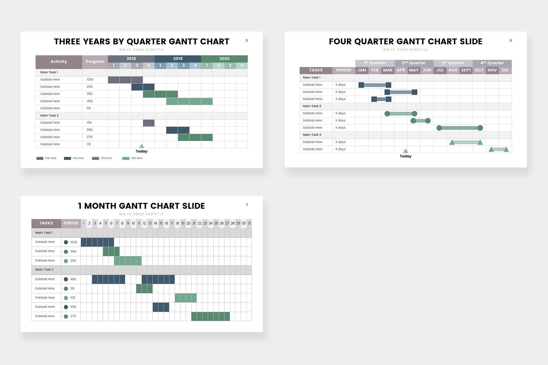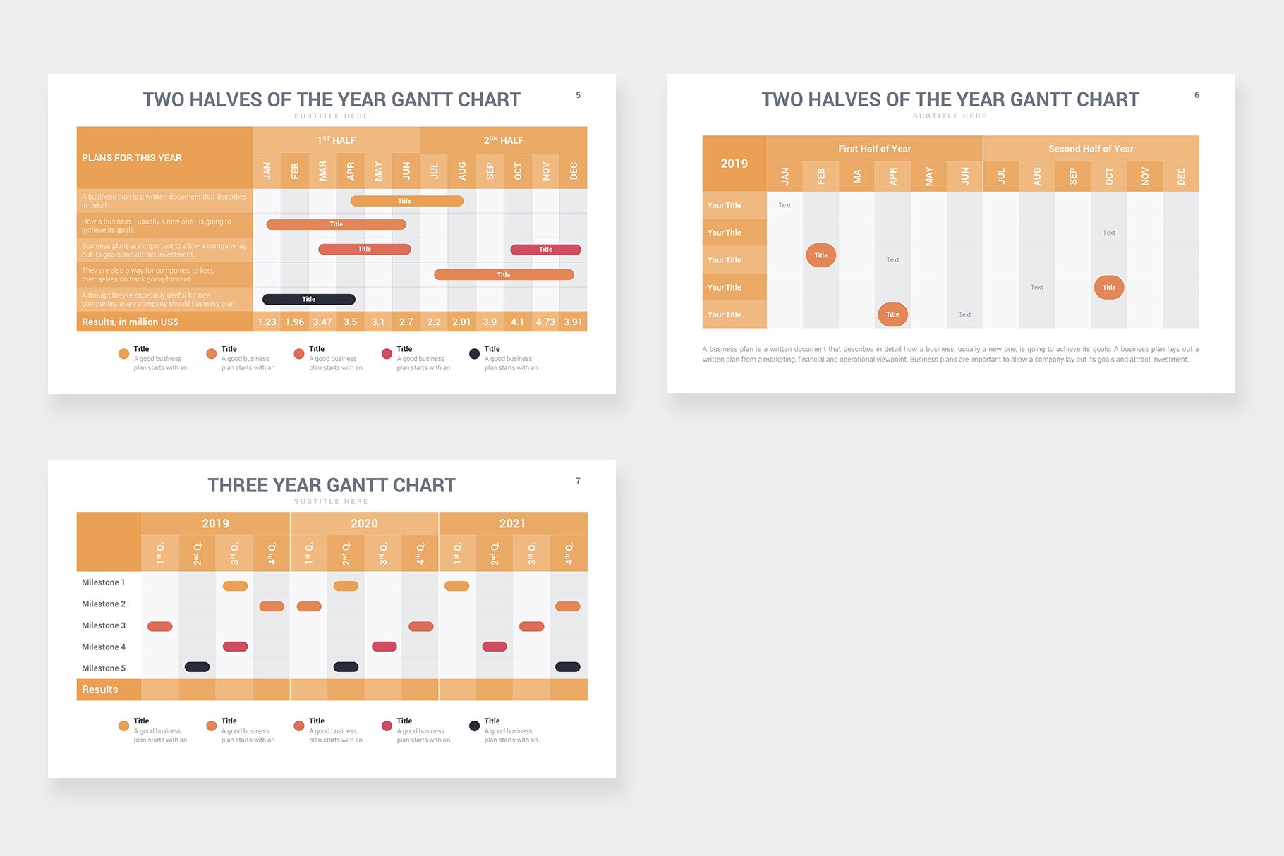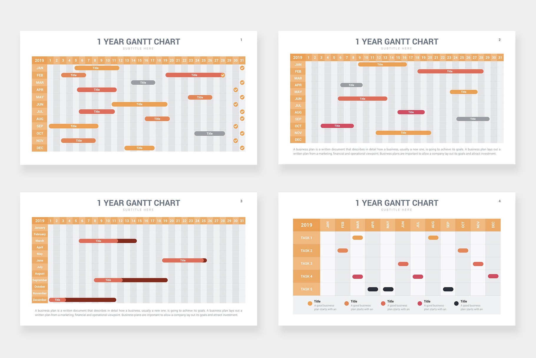 Gantt infographics compatible with Powerpoint, Keynote and Google Slides.