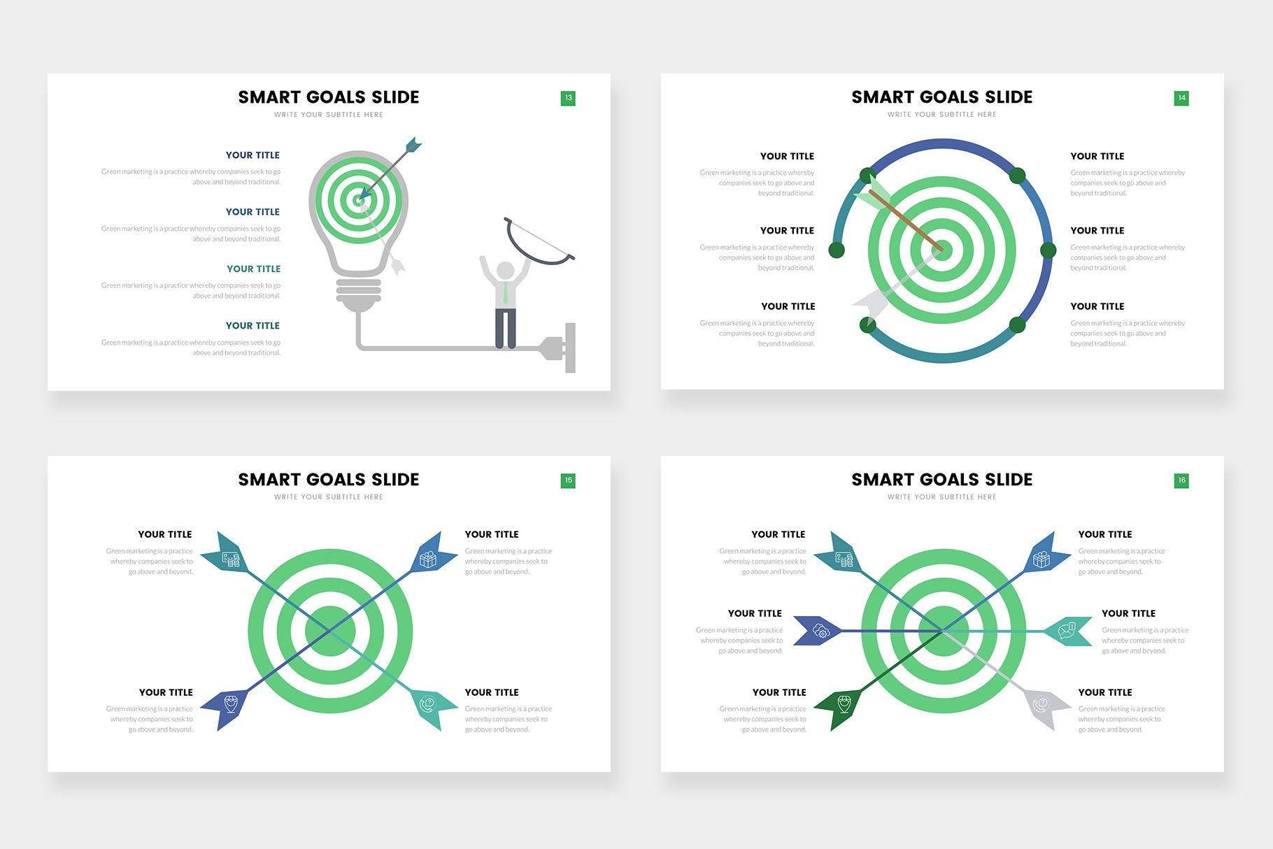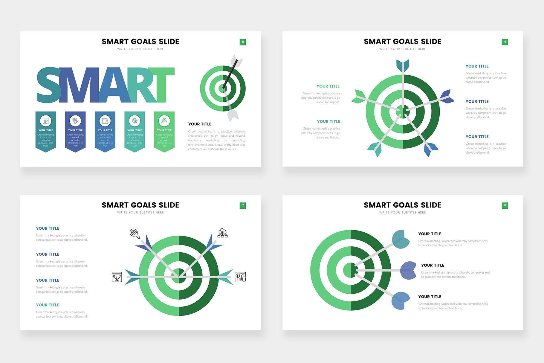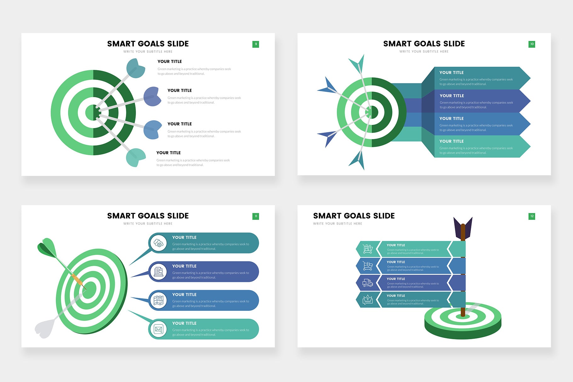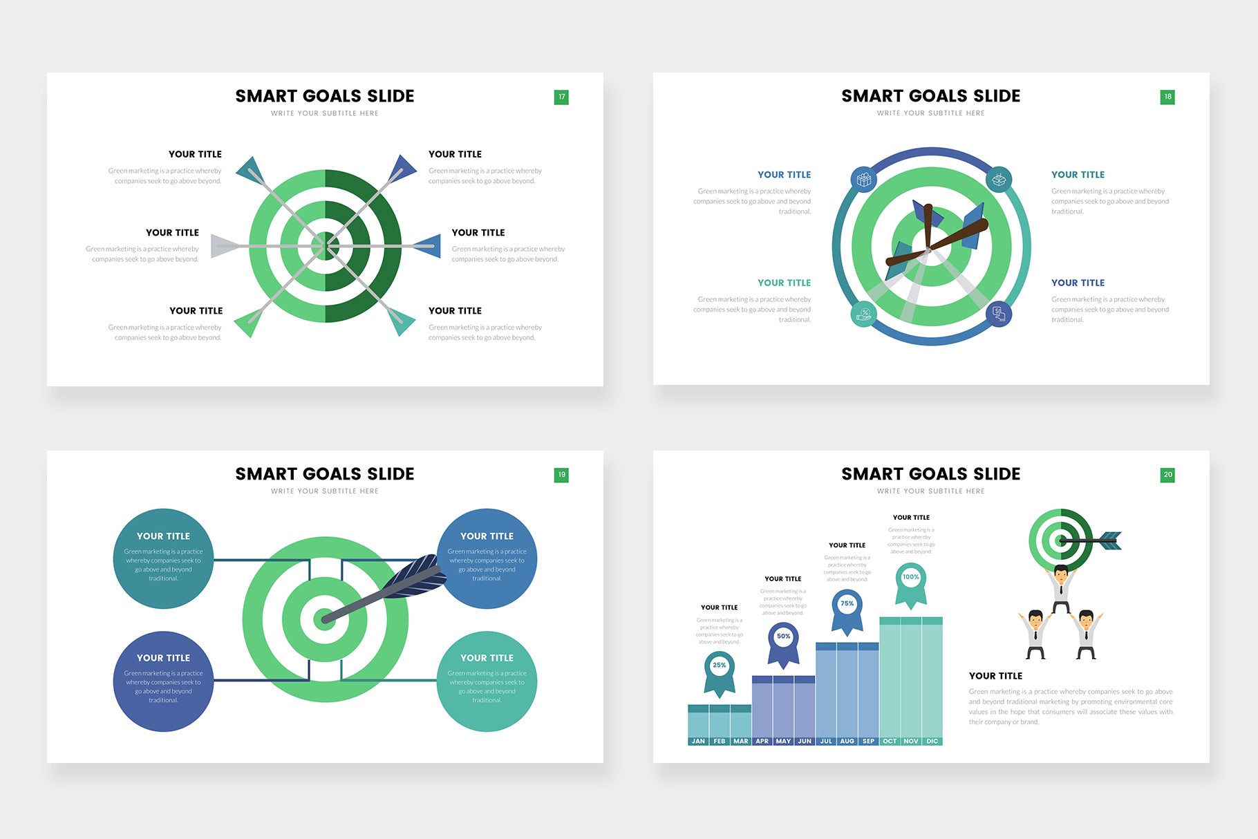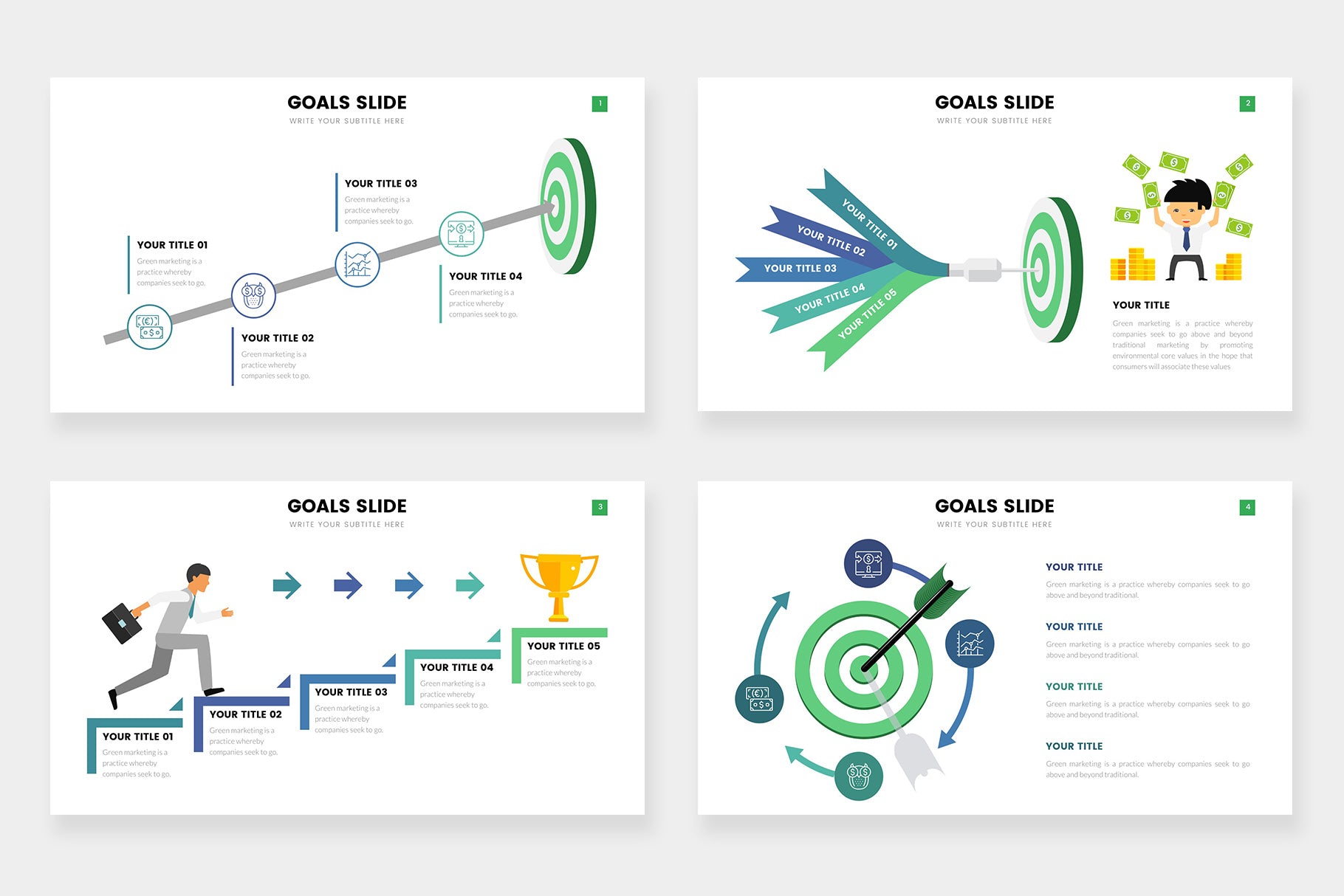 Goals infographics compatible with Powerpoint, Keynote and Google Slides.
