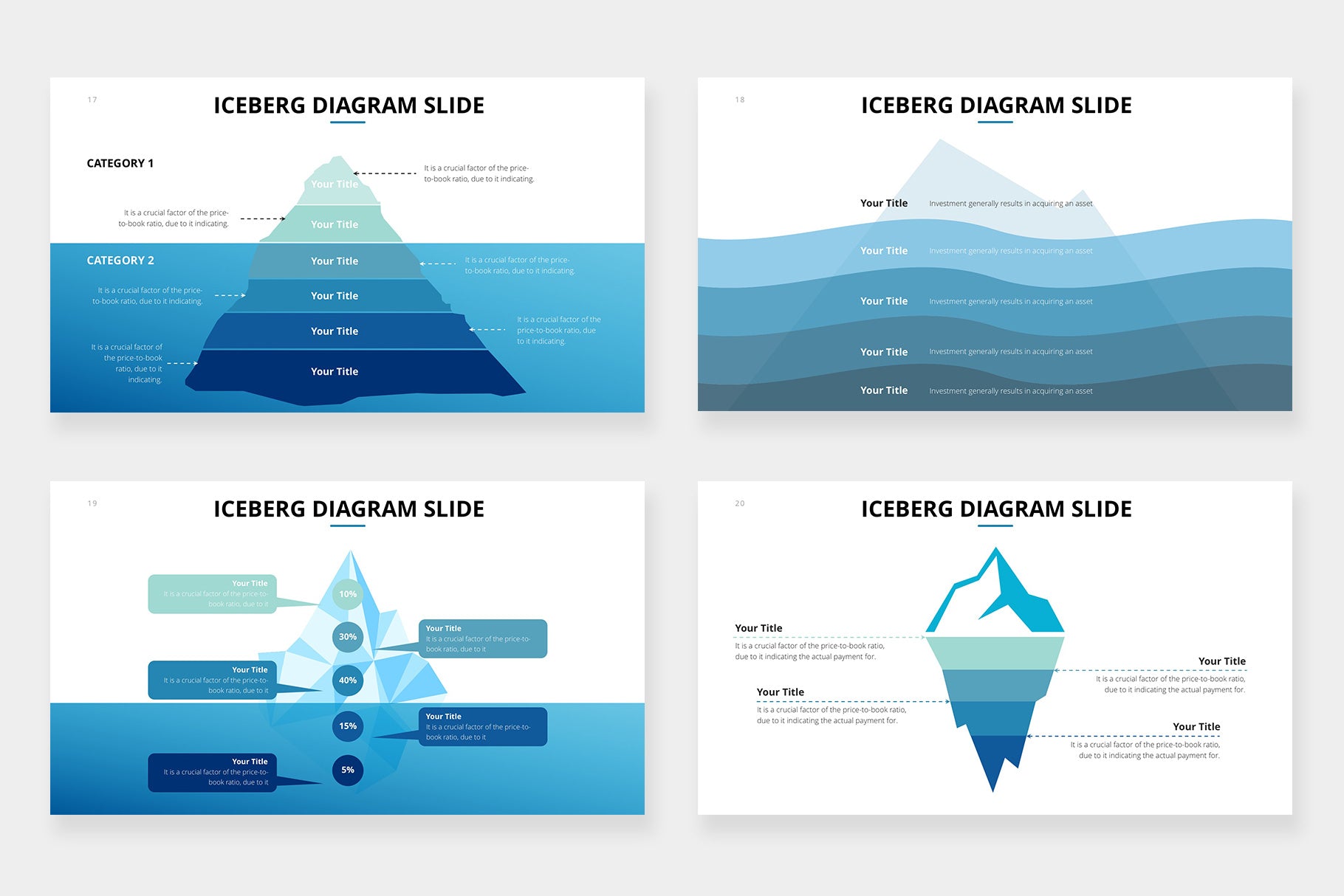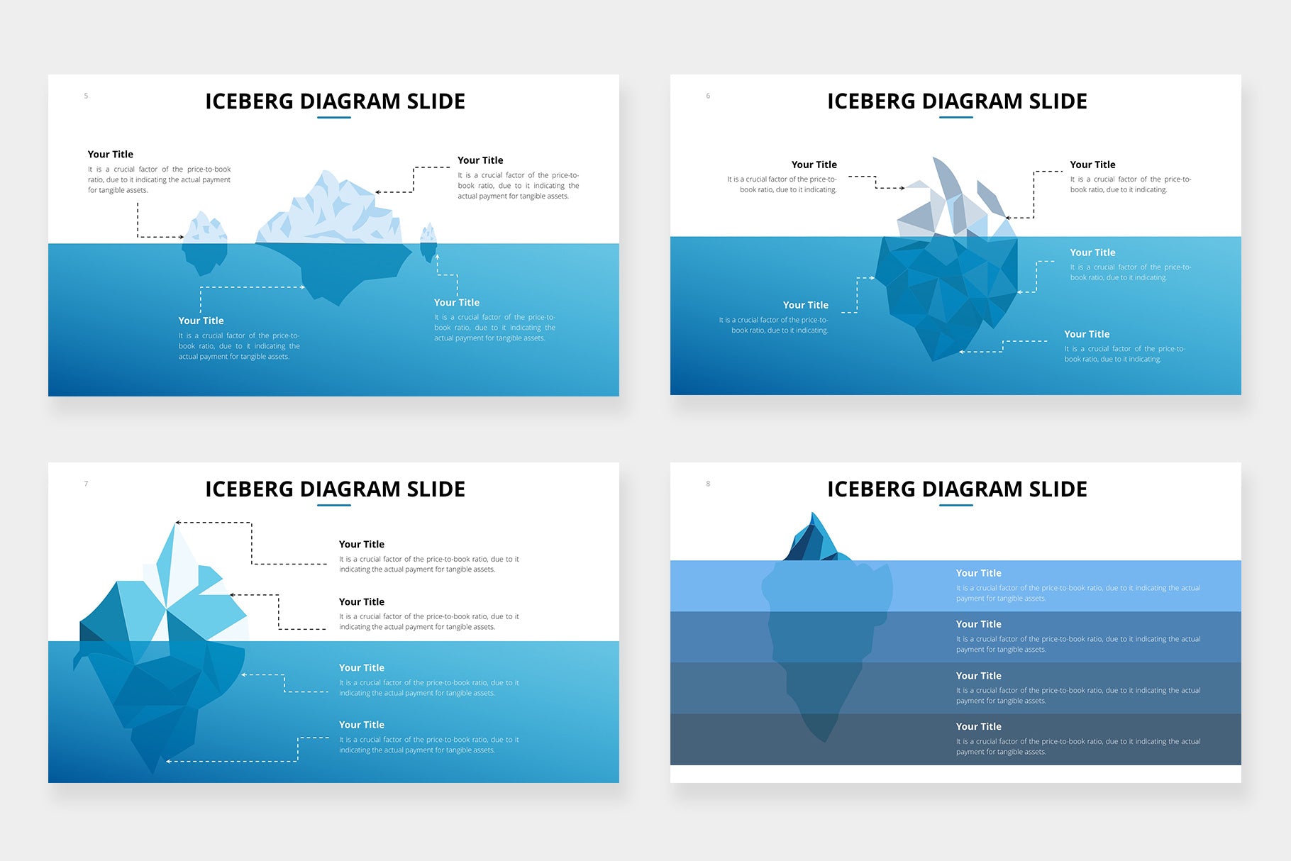 Iceberg Diagram infographics compatible with Powerpoint, Keynote and Google Slides.