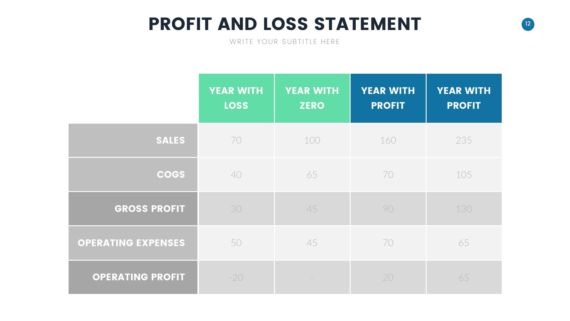 Profit and Loss infographics compatible with Powerpoint, Keynote and Google Slides.