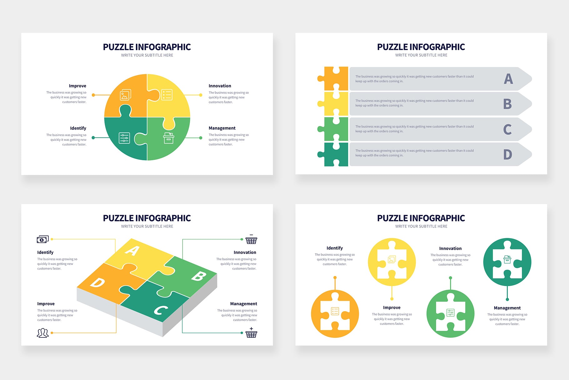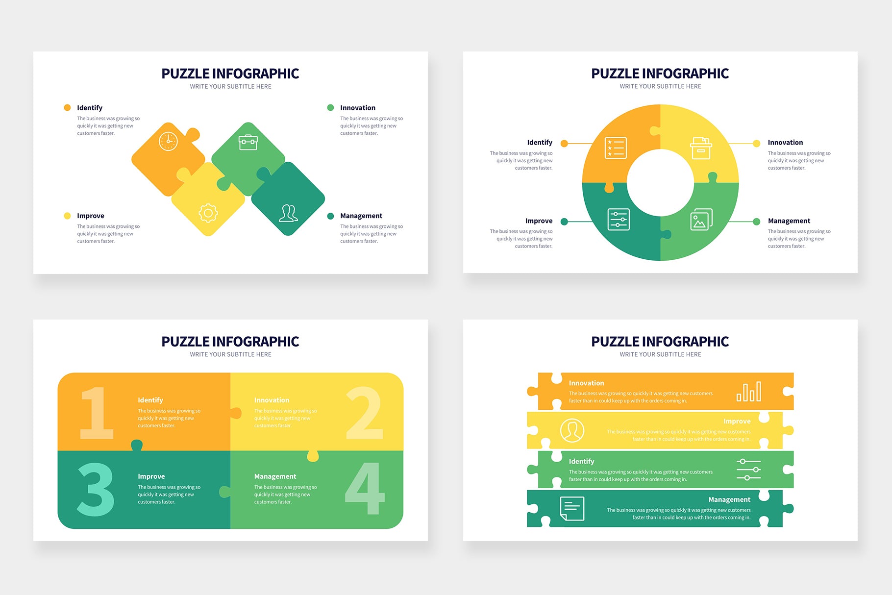Puzzle infographics compatible with Powerpoint, Keynote and Google Slides.