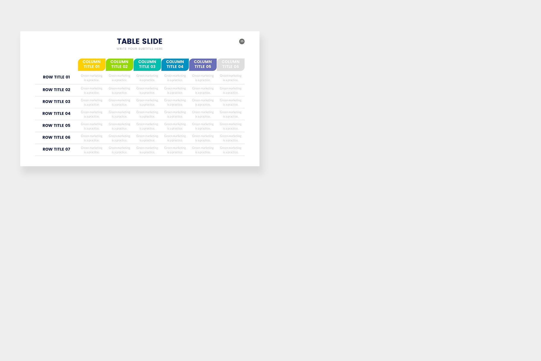 Table infographics compatible with Powerpoint, Keynote and Google Slides.