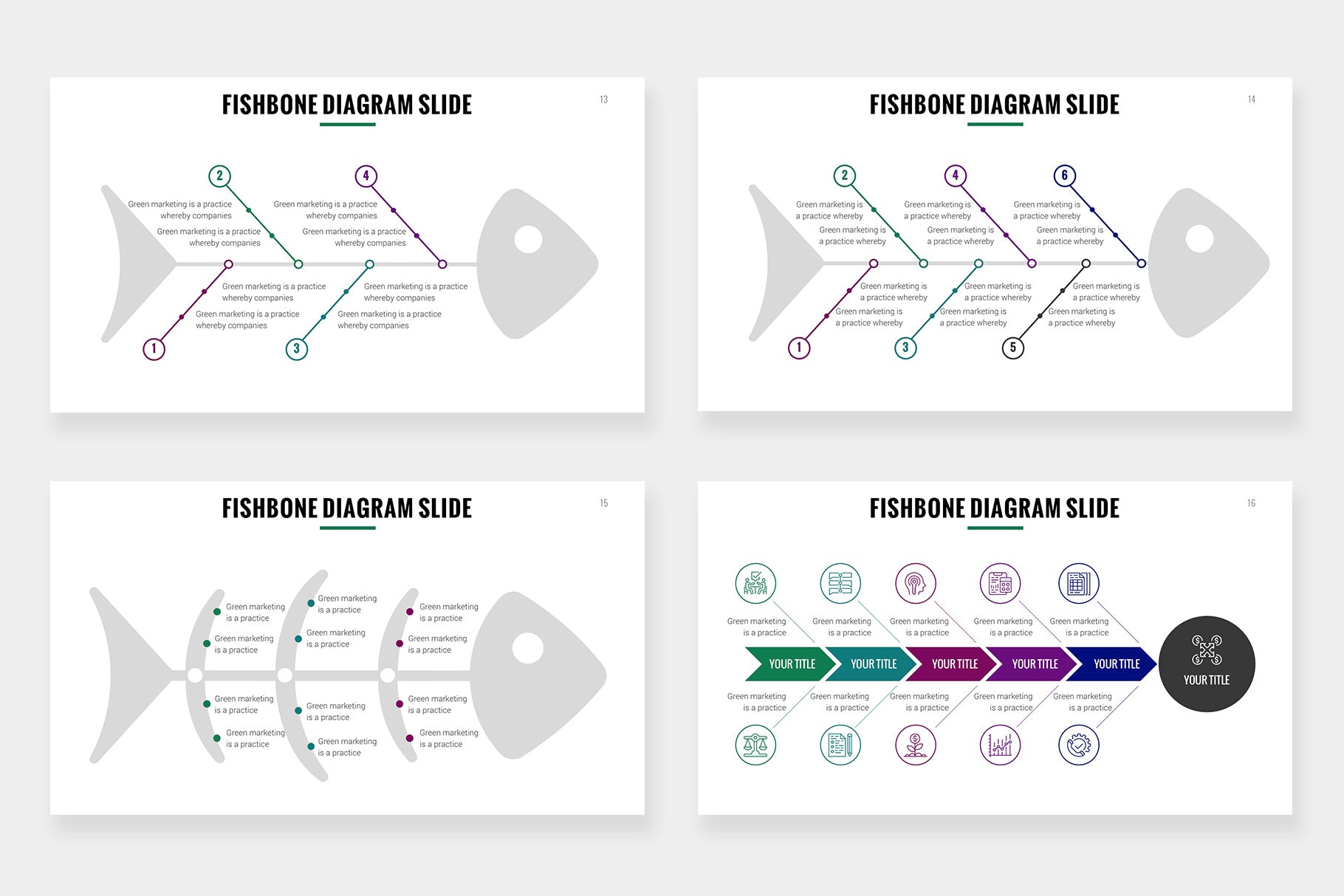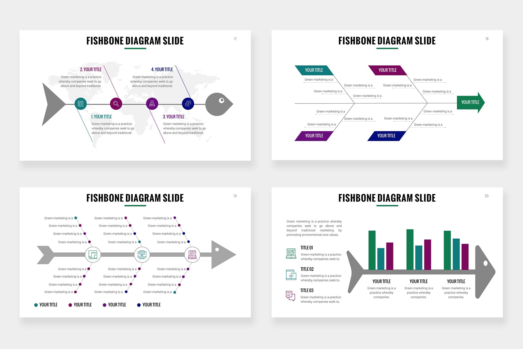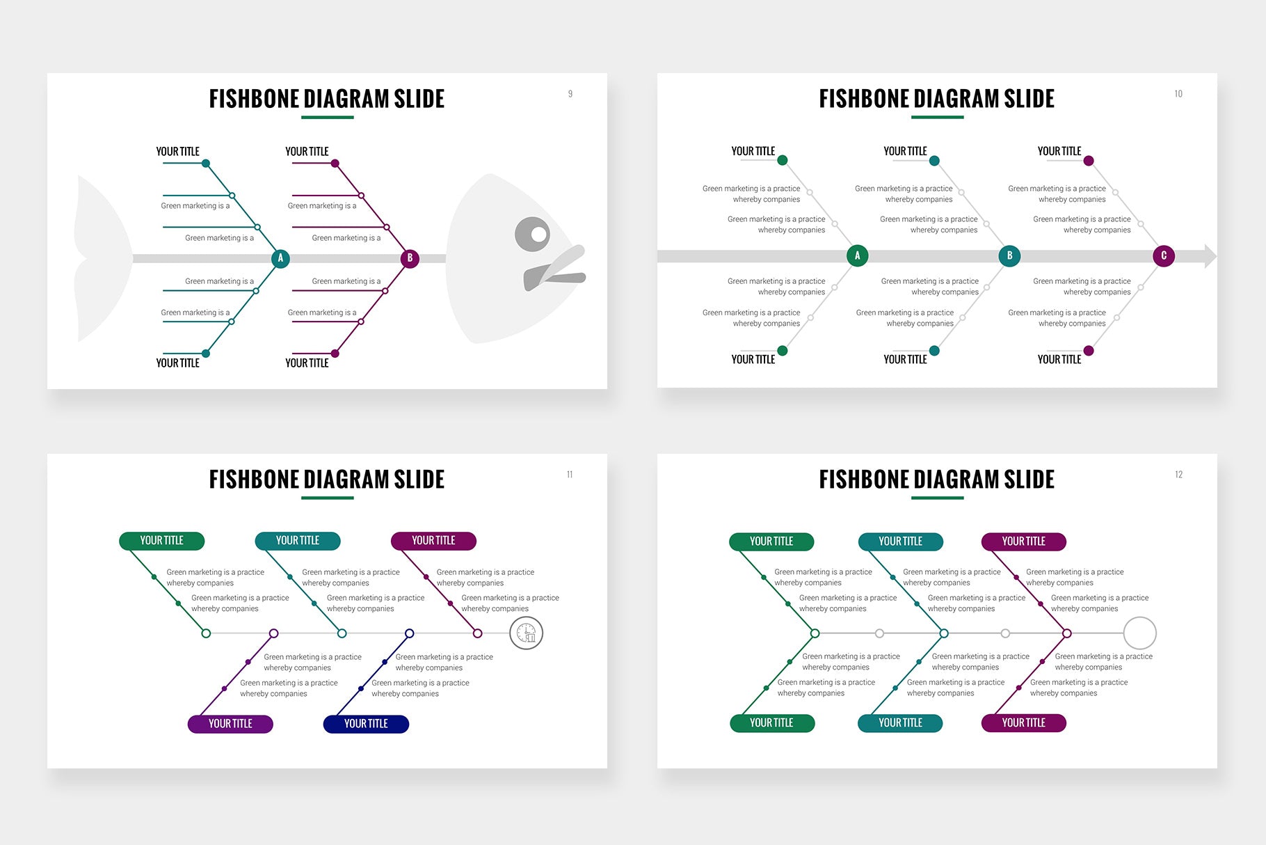 Fishbone infographics compatible with Powerpoint, Keynote and Google Slides.