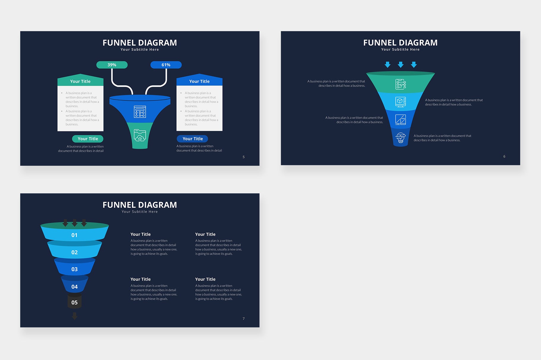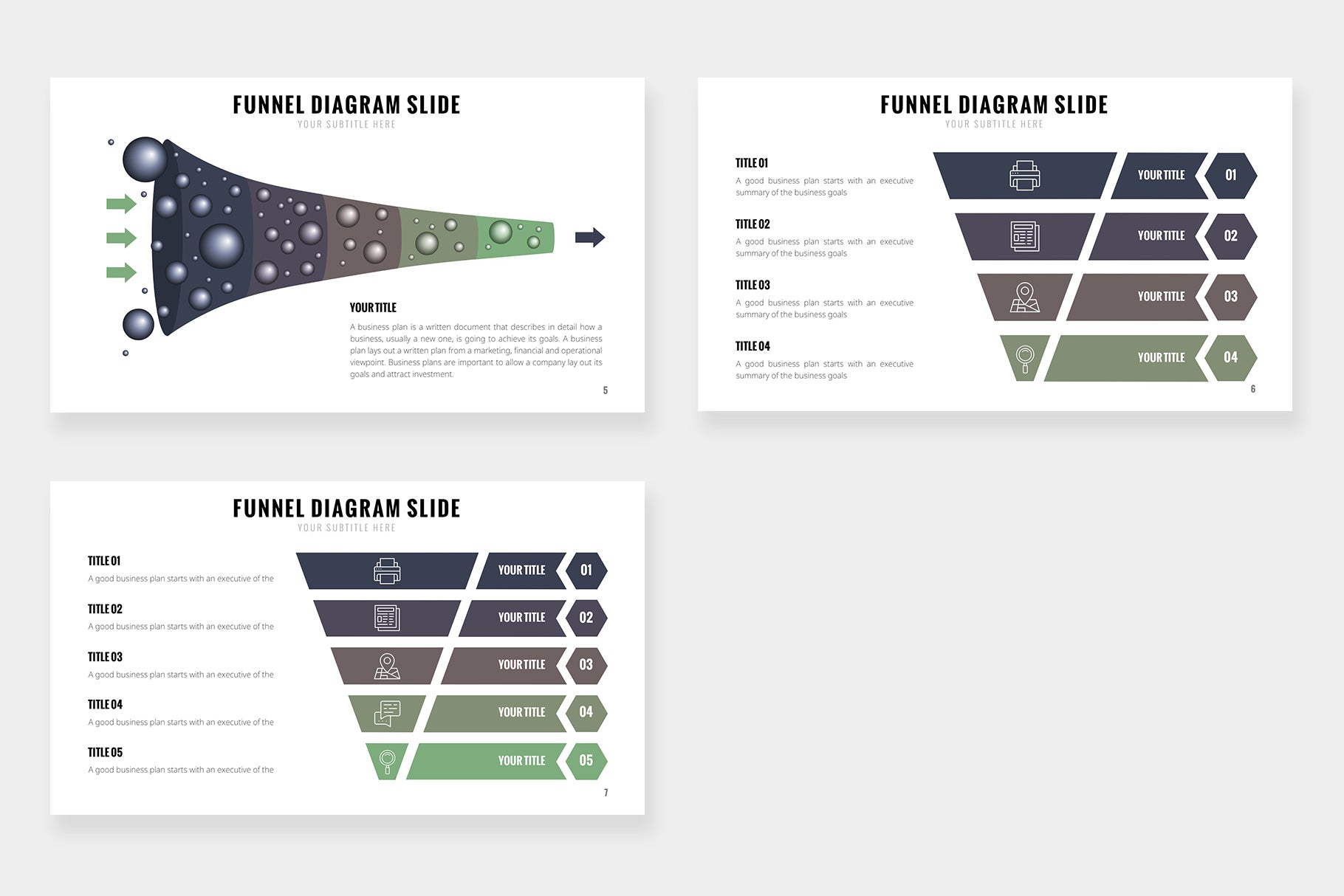 Funnel infographics compatible with Powerpoint, Keynote and Google Slides.