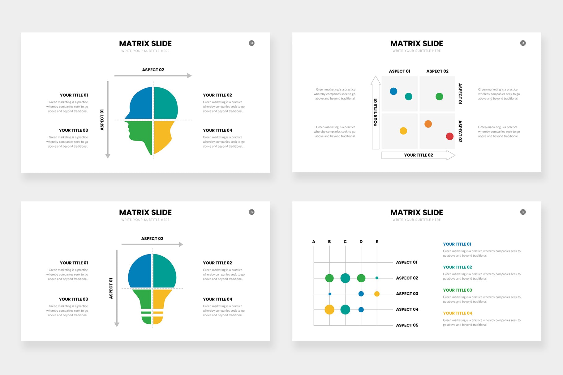 Matrix infographics compatible with Powerpoint, Keynote and Google Slides.